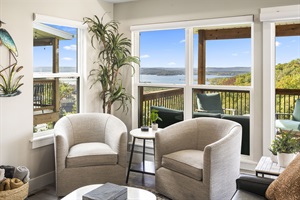 Step outside on the expansive back deck and enjoy breathtaking lake views. The main level deck features a dining table, comfortable outdoor seating, and an outdoor BBQ grill. You won't find a better view than this one!