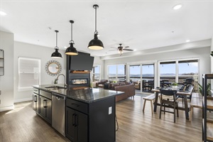 Our 5 bedroom chateau is ready for your stay! On the main level of Dark Horse Chateau, you'll discover an inviting living room area with a 75-inch smart TV and a modern fireplace. The fully equipped kitchen offers the latest updates, ensuring effortless meal preparation for your family. Whether you're enjoying a quick breakfast at the large island or bonding over preparing a family style meal, the kitchen facilitates memorable moments. A beautiful dining table adjacent to the kitchen provides an ideal setting for delightful dinners or engaging card games. Enjoying the beautiful Ozark weather? Take in the outdoors and grill some mouthwatering food. With its breathtaking view of Table Rock Lake, the deck offers a peaceful and relaxing place to watch the sun set. Come rain or shine, this deck is the perfect spot to gather and savor dessert while marveling at the breathtaking view of Table Rock Lake. Unwind in the inviting hot tub on the back deck, allowing relaxation to wash over you.